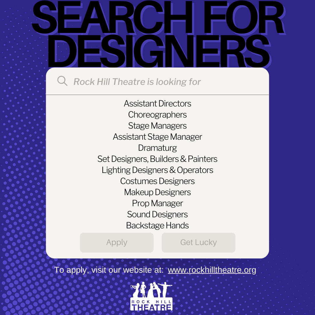 Rock Hill Theatre is always excited to fill tech & designer roles for our productions! Thank you for your interest, we hope to get you involved early on so you can be a part of the whole production process! You might not get the exact show expected, but we will do our best to get your preference, and use your best strengths!